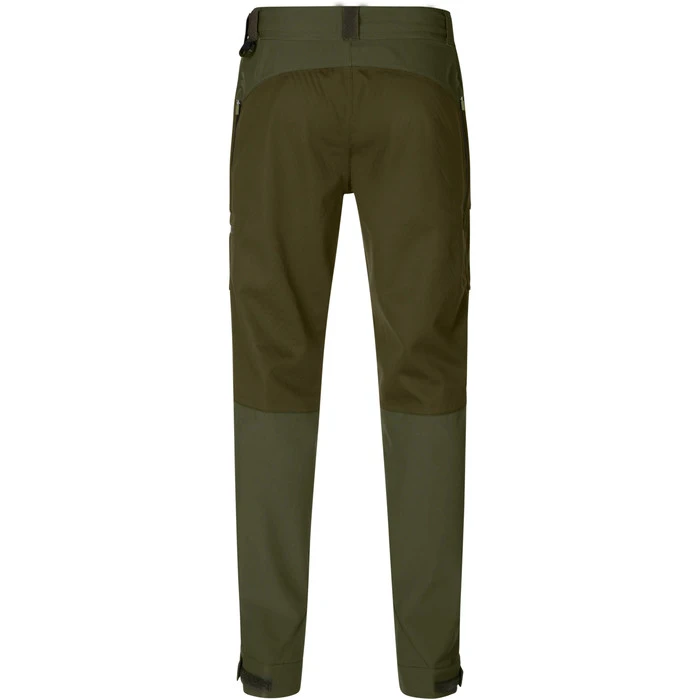 Like the Hawker Shell II jacket, the trousers are made from a soft, hi-stretch, but hardwearing, fabric that naturally follows your movements. The trousers feature our own waterproof, windproof and breathable SEETEX® membrane, which has a hydrostatic head of 10,000 mm. They also have ventilation zips on each hip, to help keep you cool when your activity level rises. One particularly useful feature of the Hawker Shell II trousers is the inner honeycomb surface. This allows for better air circulation and means that any moisture that accumulates inside the trousers is distributed over a greater area and evaporates more quickly. A small detail perhaps, but one that makes a big difference, when exertion levels are on the rise. The trousers have front pockets and a large pocket on the left thigh, all with waterproof zips, to keep your belongings safe when you are mobile. On the left hip is a strong D ring, for attaching various items. There are strong adjustable velcro straps at the ankles to fit the trousers closely around your boots. A durable reinforcing band is sewn inside the trousers at the ankles, to protect this high-wear area.